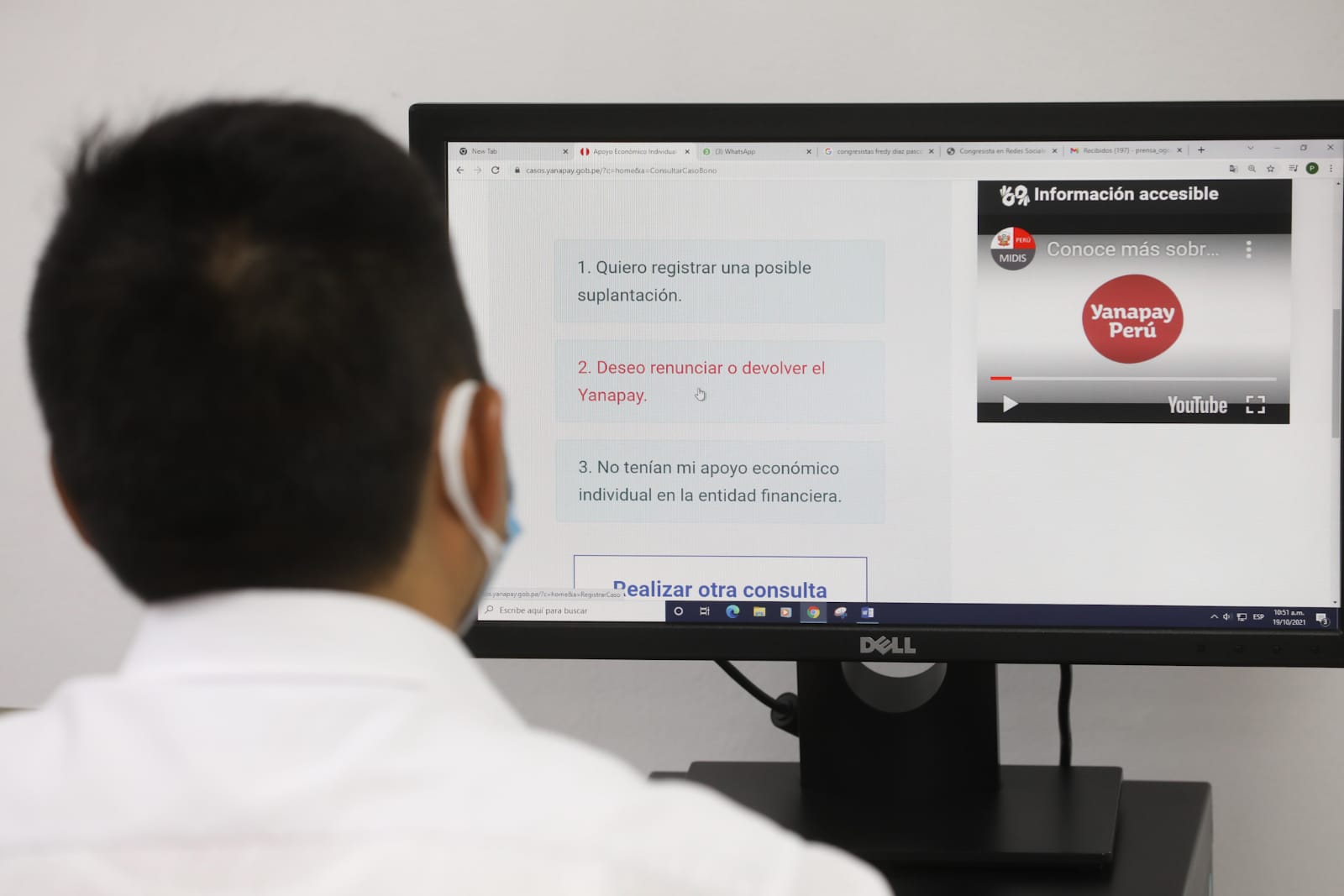 Hasta el momento más de 400 personas renunciaron al apoyo económico Yanapay Perú